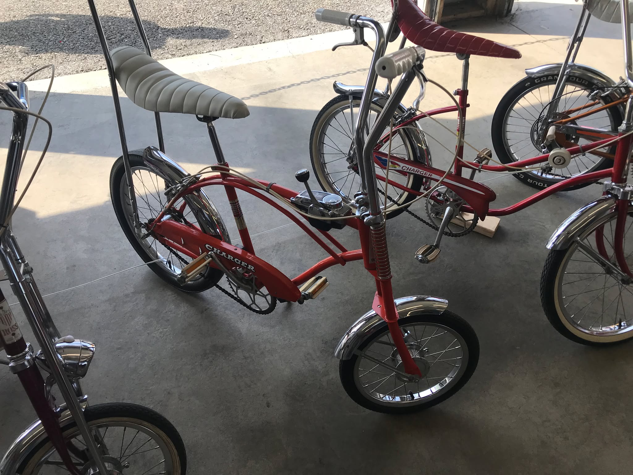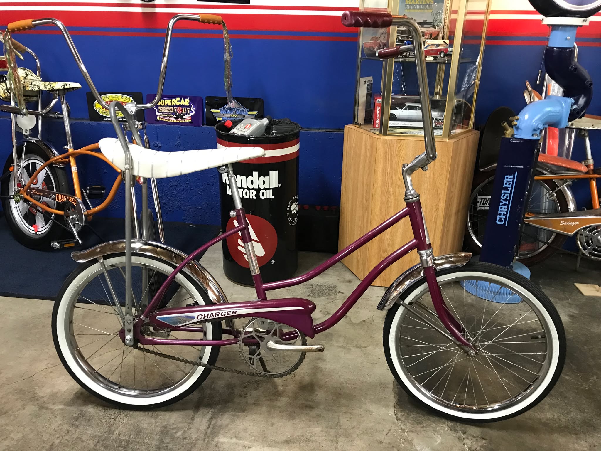 The Charger featured Chrome Wheels and Fenders, Extra Wide handlebars and a frame that was longer than the Road Runner Model.