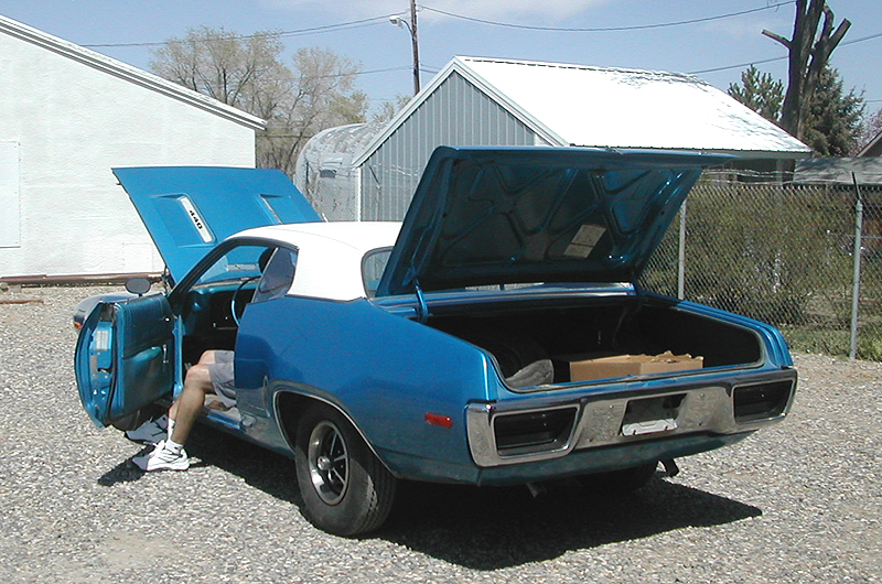 After exploring his entire shop and large car collection, it was time to view the car we’d driven so far to see: A 1972 RoadRunner/GTX, still wearing its original paint, a true survivor. And considering that it survived in such extreme, harsh weather and road conditions (Did I mention the roads? They were equivalent to driving your car thru a sandblasting booth, for hundreds of miles), it was surprising that there could even be any paint left on it. It had its dents and dings; it sported the patina of time and real miles. However, considering it was used, driven the way God and Chrysler intended, it was in remarkably good shape. So, a deal was struck, hands were shook, money exchanged, car loaded on the trailer, Thank You’s and well wishes on both sides, then we hopped up in the truck and were off.