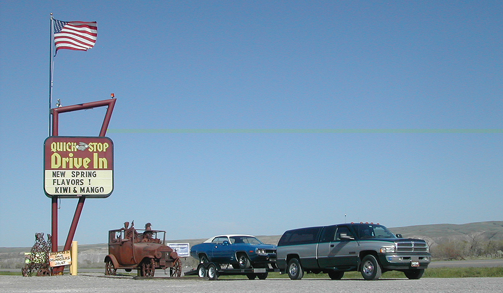 when we passed the Quick Stop Drive-In, somewhere in the middle of nowhere.