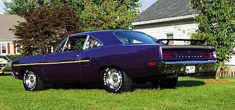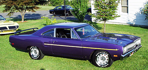 ROADRUNNER STATS 1970 Road Runner Coupe, One of 2093 Coupes built, 440+6, Pistol Grip 4 Spd., 4.10 Dana, Air Grabber Hood, Go wing, Hood Mounted Turn Signals, Hood Pins, 15 inch Rallyes, Rebuilt Motor, 509 Mopar Performance cam, New Carbs and Intake, K&N filter, MSD ignition, Chromed Underhood Accessories, HPC Coated Headers, Center Force Clutch, Super Stock Spring with poly bushings, Flow Master Mufflers, Paint PPG Plum Crazy Purple Paint FC7 ( Base Clear ) New Black Carpet & Bucket seat Interior by Legendary, Radio Delete Very Quick and Straight as an arrow. Multi Show Winner- Chrysler's @ Carlisle 1998 2nd Place Northeast Mighty Mopar's 1999 1st place, Many Best Cruise Night Muscle Car Awards. "THIS 1970 ROADRUNNER IS SET UP MOPAR MEAN" |