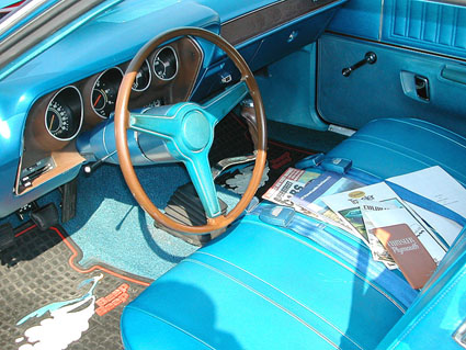Interior features are, B-5 Blue bench seat int. Rallye Cluster with