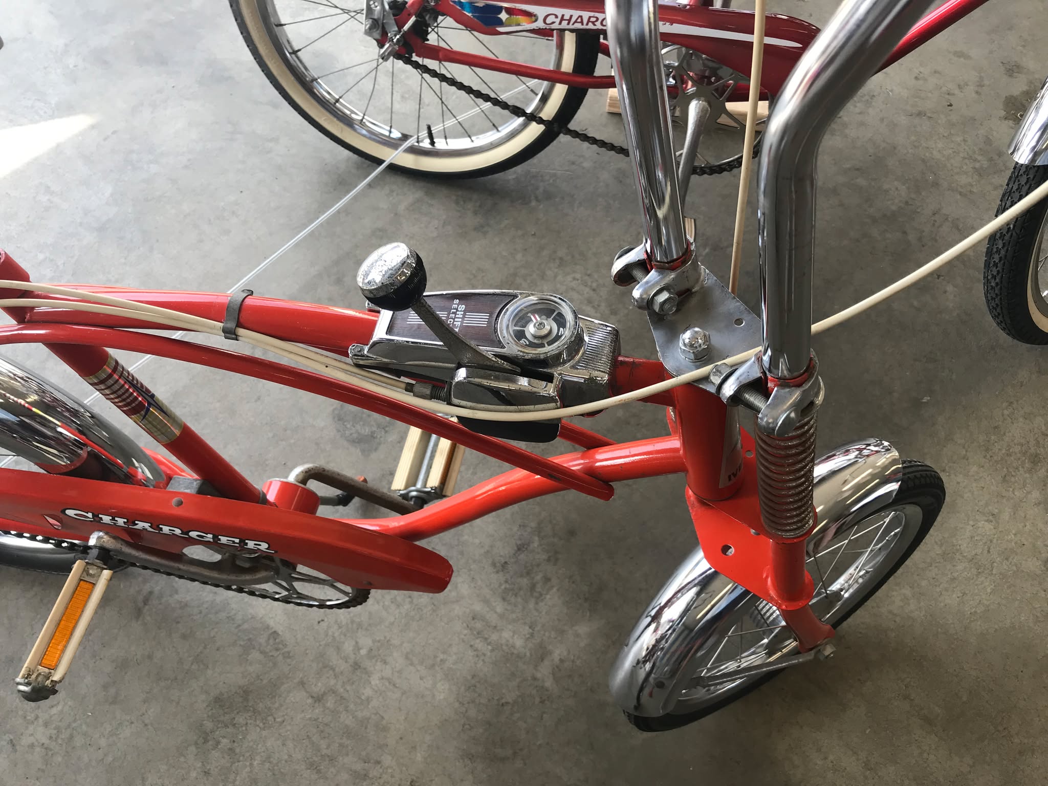 The Charger featured Chrome Wheels and Fenders, Extra Wide handlebars and a frame that was longer than the Road Runner Model.