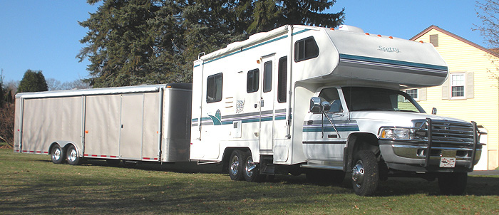 *31 Foot Serro Scotty Class C Motorhome *12 Valve 359 CI Cummins Intercooled Turbo Diesel Tuned to over 275 HP *4 Inch Non Restricted Exhaust *High Performance Air Intake *4 Spd. Automatic with aftermarket Valve Body and HD Lock-up Torque Convertor *Single Wheel Load Relieving Tag Axle *Extra Heavy Duty Hitch. Rated to pull 11,000 Lb Enclosed Trailer *Upgraded Chrysler Corp Chrome Wheels
